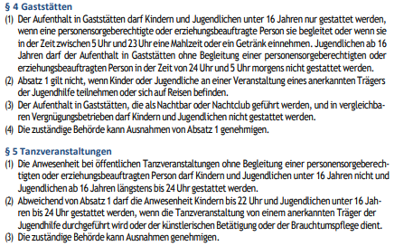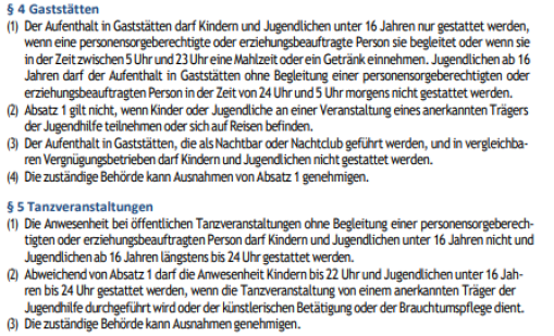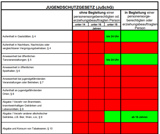 Es gilt das deutsche Jugendschutzgesetz(JuSchG).